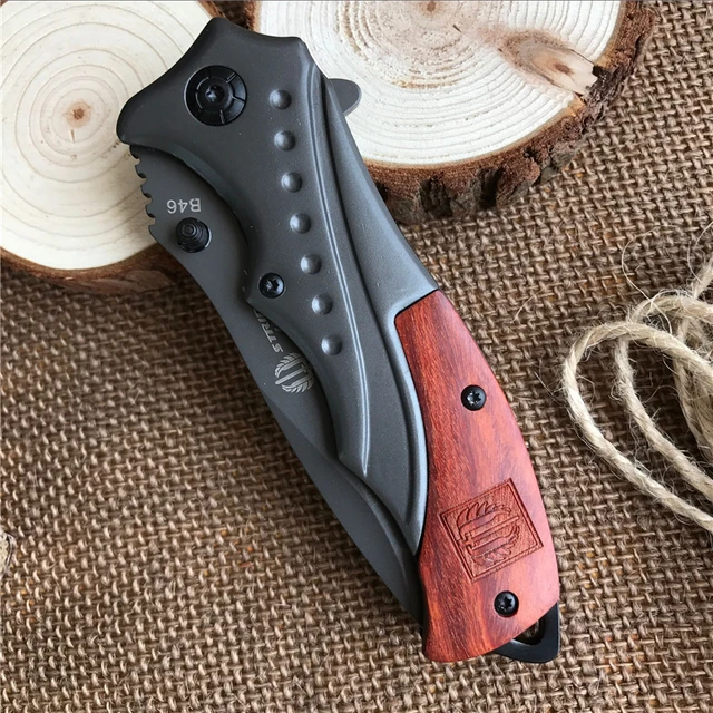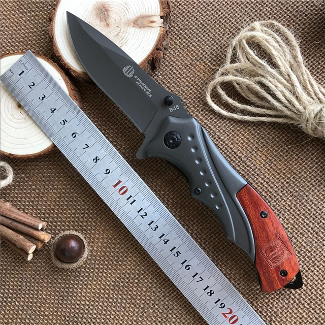 상품 내용 유형: 접는 칼 전체 길이: 200 미리메터 길이 블레이드: 85 미리메터 핸들 길이: 115 미리메터 블레이드 두께: 2.5 미리메터 폭 블레이드: 28 미리메터 사운드: 7Cr13MoV 핸들 재질: 나무 스테인레스 스틸 경도: 58HRC 무게: 145 그램 (포장) 표면 처리: 티타늄 색상 포장: 상자