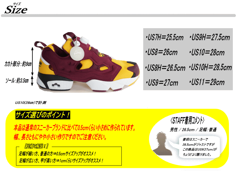 | サイズ | 作り⇒やや小さめ 【サイズ選びのポイント!】 足幅が細い方、普通の方⇒0.5cmくらいサイズアップがオススメ! 足幅が広い方、甲が高い方⇒1.0cmくらいサイズアップがオススメ! |