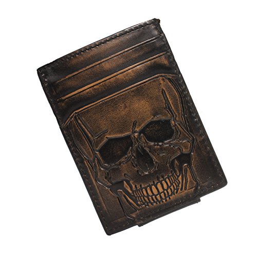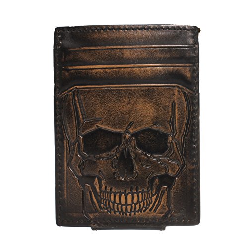 -. Binding : Apparel -. Brand : House of Jack Co. -. Color : Black -. Department : mens -. EAN : 0850558006173 -. Feature : Handcrafted from Full Grain Leather / Embossed Exterior Skull Graphic with Hand Burnished Finish / 4 Card Slots, Interior Receipt Pocket, Strong Magnetic Closure / Front Pocket Wallet - Slim Multicard Construction / House of Jack Co. Gift Box Included -. Model : 6173 -. MPN : KAL53791 -. PackageQuantity : 1 -. PartNumber : KAL53791 -. ProductGroup : Apparel -. ProductTypeName : ACCESSORY -. Size : 4.0 x 2.75 x 0.30 -. Title : Embossed SKULL Front Pocket Wallet - Magnetic Closure - Money Clip Wallet - Slim Construction -. UPC : 850558006173