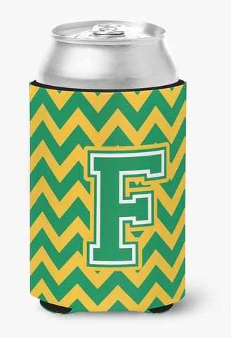 Caroline's Treasures CJ1059-FCC Letter F Chevron Green and Gold Can or Bottle Hugger, Multicolor