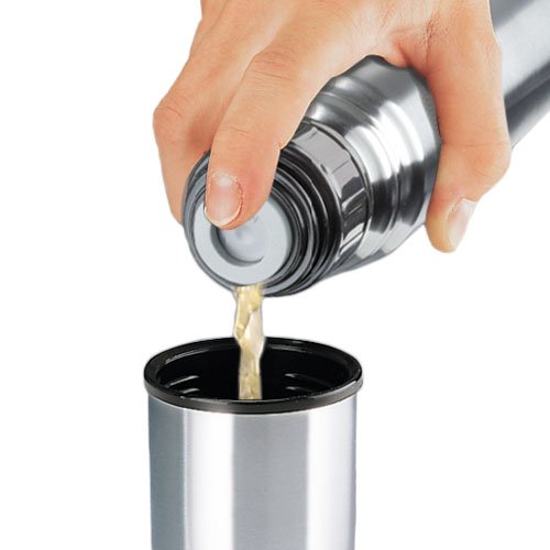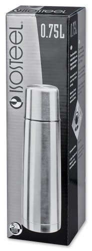 Isosteel VA-9556Q 25 fl. oz. Double Walled Slimline Vacuum Flask, Screw Stopper, Quickstop System - Single Hand Pouring, Insulating Plastic Drinking Mug - BPA free