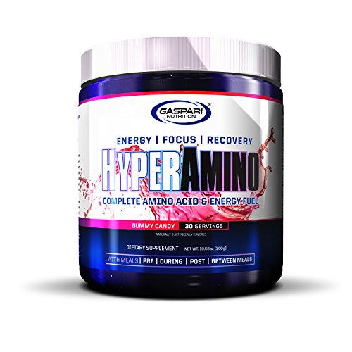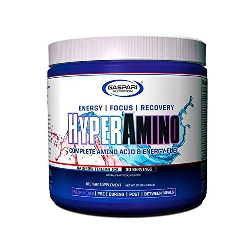 Energy. Focus. Recovery. Complete Amino Acid & Energy Fuel. Supports Lean Muscle Growth. Powerful Energizers with Antioxidant Support. Enhances Endurance & Stamina. Anti-Catabolic & Anti-Cortisol Effects. Train Longer & Harder With HYPERAMINO. HYPERAMINO is exactly what the name says it is - Amino Acids that drive insane energy. Gaspari Nutrition has taken powerful Amino Acids and then tweaked them with a cutting-edge energy technology so that it blasts you faster and lasts longer. HYPERAMINO is a Gaspari Nutrition Muscle & Strength supplement designed to quench the "hard to please" athlete's thirst! HYPERAMINO includes rapid release energy aids alongside extended release energy components to provide an exceptionally quick, long-lasting, no-crash stimulant feeling that is in a "league of its own" when it comes to Energized Recovery! HYPERAMINO is an incredible breakthrough in BCAA and recovery enhancement. Designed to be used before, during and after training, HYPERAMINO helps kick-start protein synthesis which plays an important role in muscle growth and recovery.Feature