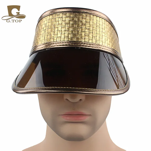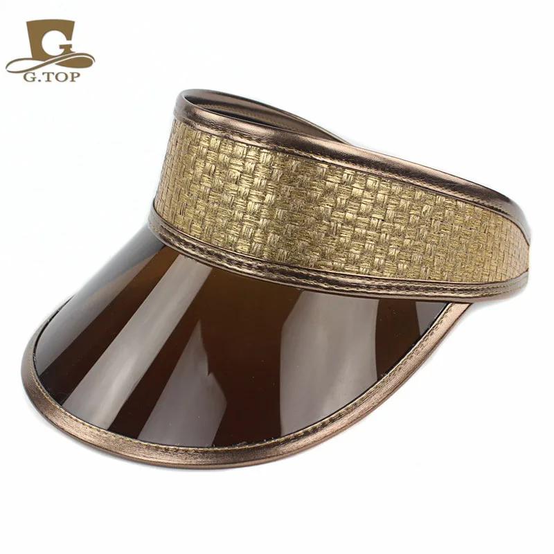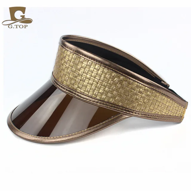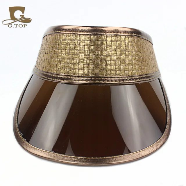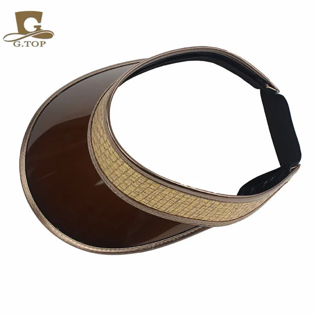 [해외]야외 브라운 플라스틱 태양 바이저 UV 보호 모자 골드 가죽 모자 좋은 UV 블록