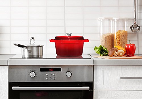 Enameled fire red exterior and cream colored interior will complement any kitchen décor, easy to clean and maintain its great looks