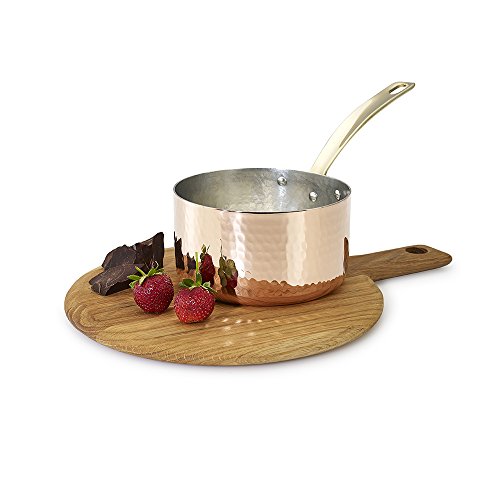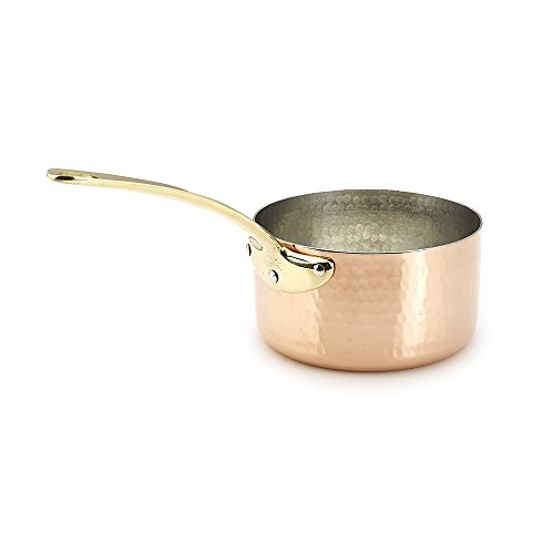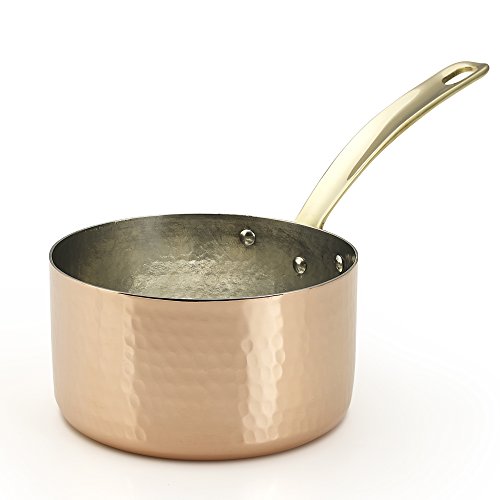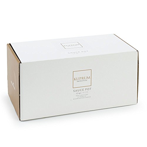 Specialty copper saucepan, handmade and hand-hammered. Made of solid copper and nonreactive tin linings; has excellent heat conductivity and melts sugar without clumping. Ideal for heating sauces, cooking beans, heating soups or steaming vegetables, caramelizing sugar, beating eggs or cream. Rounded bottom for easier whisking, and elegant handle secured with rivets (No Lid). Hand-hammered by skilled artisans from the Mediterranean (100% Recyclable - Limited Lifetime Warranty). Kuprum products are Artisanale, they are crafted with passion and great skill. They proudly carry the Mediterranean spirit to your kitchen with their quality, and to your table with their dazzling look. This product is 100% recyclable. By time, copper will naturally form a dark layer, which doesn't affect its performance. Occasionally use a non-abrasive cleaner to keep your copperware look new. Kuprum products are ideal for gas and electric cooktops, but not for inductions. Please use wood or plastic utensils to avoid scratching the tin lining. We recommend not to heat an empty pot above 450°F. Do not use in dishwasher or in microwave. Kuprum cookware aims to deliver rich flavor and texture when cooking a wide range of food. These copperware heats up rapidly and cools down quickly for maximum control and cooking results. Copperware also distributes heat more evenly than other popular materials.Feature