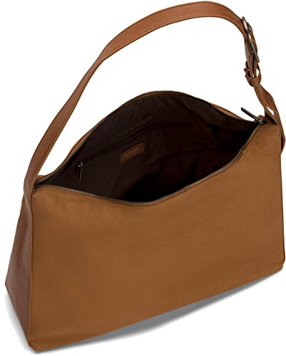 Large over the shoulder bag that can be worn crossbody with adjustable strap. Top zipper closure with side panel accents. INTERIOR:zipper pocket, smartphone pocket, logoembossed Dwell tag. 100% recycled nylon lining.Feature