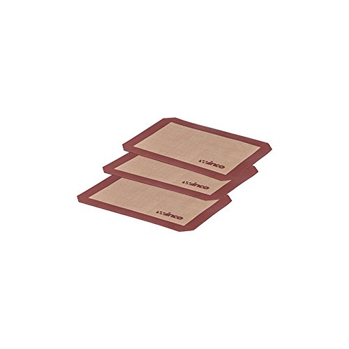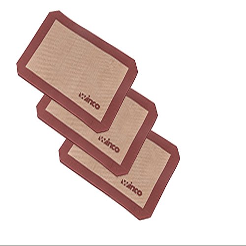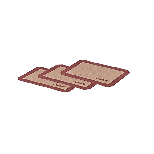(set of 3) of standard half size baking sheets (16.5" x 11 5/8") - Mat thickness is 0.75 mm Perfect for baking, kneading, rolling, candy/macaron/pastry/cookie/bun/bread making No need for oil, cooking sprays, or parchment paper