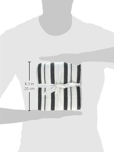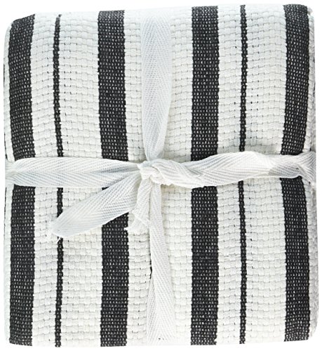 Cotton Craft - 4 Pack Oversized Kitchen Towels, 20x30 - Black, Pure 100% Cotton, Crisp Basket weave striped pattern, Convenient hanging loop - Highly absorbent, Professional Grade, Soft yet Sturdy