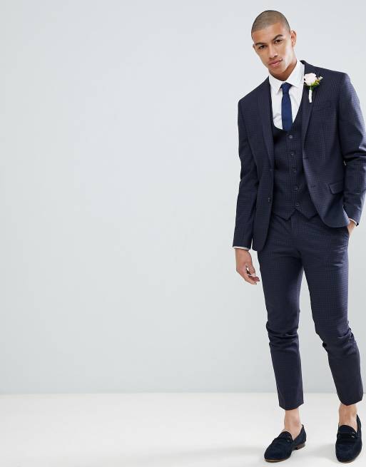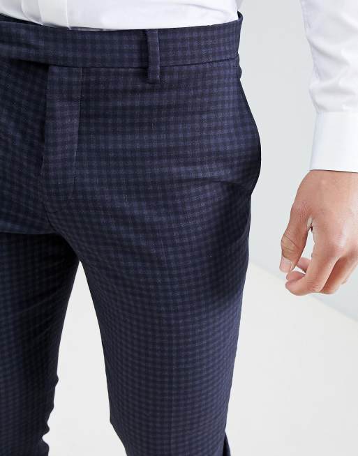 River Island Wedding Skinny Fit Suit Pants In Blue Check
