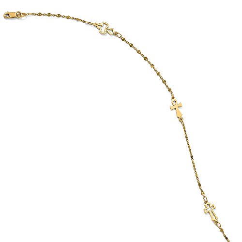 -. Title : 14K Yellow Gold Polished Triple Cross Station Anklet, 10 Inch