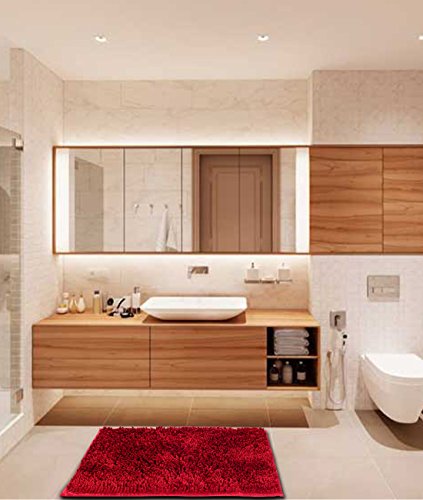 - Microfiber chenille red bathroom rugs