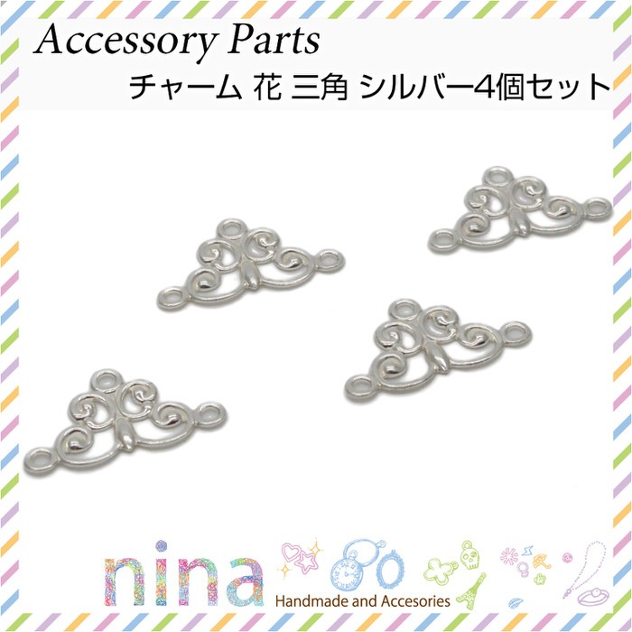 ■生産国:中国チャーム 花 手作り ハンドメイド UVレジン 手芸 レジン 三角 銀 シルバー メタルパーツ パーツ アクセサリー おしゃれ クラフト ネックレス ペンダント レジン液 封入 部品 チャーム 花 三角 シルバー 4個セット チャーム 花 三角 シルバー 4個セット ハンドメイドで素敵アクセサリーを!