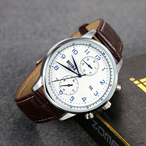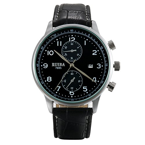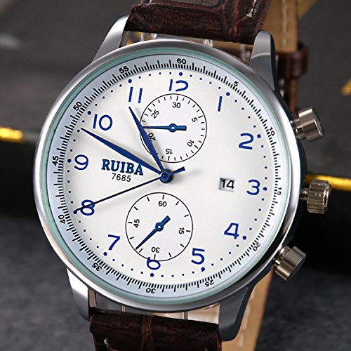 【사양】심플 숫자 문자,캘린더,레더 밴드,두 개 포인터 장식,일상생활 방수