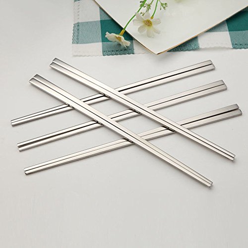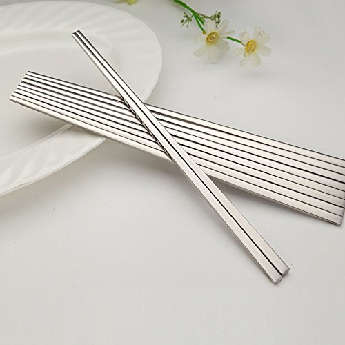 MyLifeUNIT 9 Inch Flat Chopsticks, Stainless Steel Korean Chopsticks (5 Pairs Set)