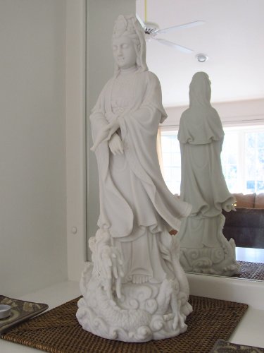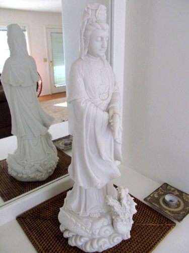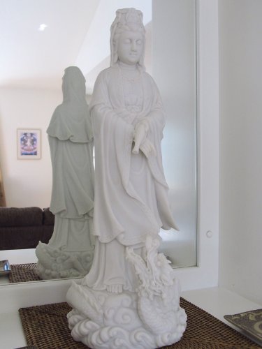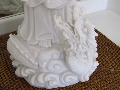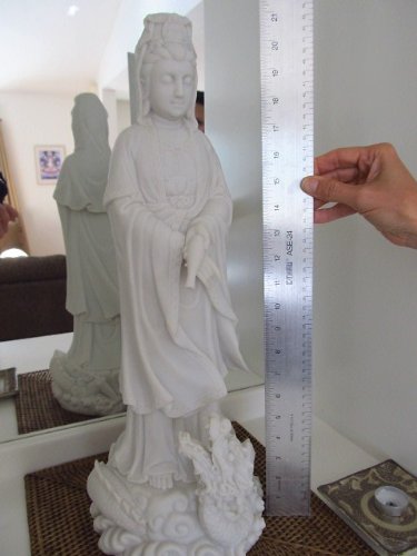 Top Collection Large 20" Guan Yin Standing on Dragon Statue. Premium Resin - White Marble Finish. Asian Goddess of Compassion and Mercy. Buddhist Deity Protector of Women. Collectible Decor Sculpture.