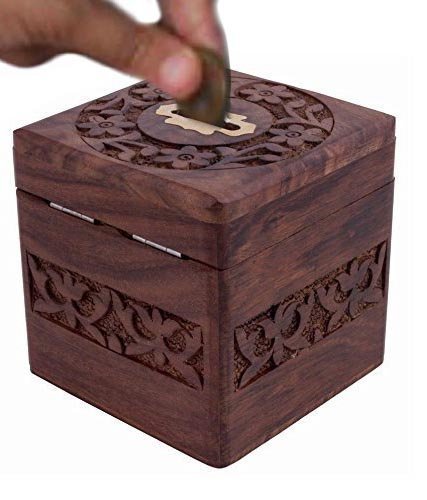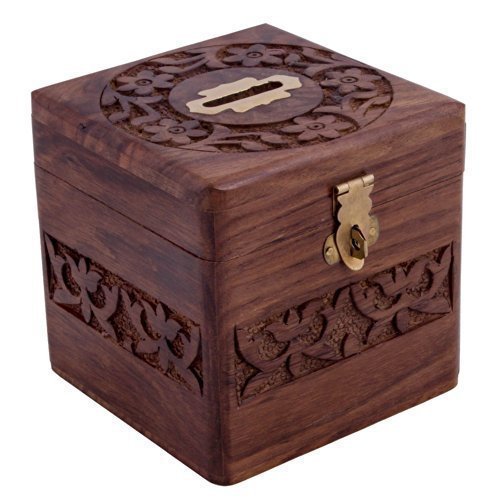 Special Gift for Your Sister at this Rakhi Unique Gift Items Wooden Money Bank, Square Design Carving Work with Lock Coin Box,money box,piggy bank,