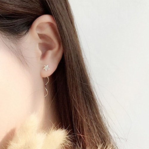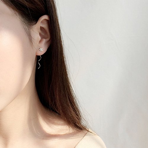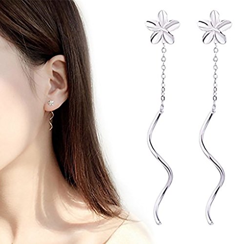 Leiothrix Geometric Flower Wave Ear Line Earrings Drop Korean Style Jewelry for Women and Girls Hypoallergenic