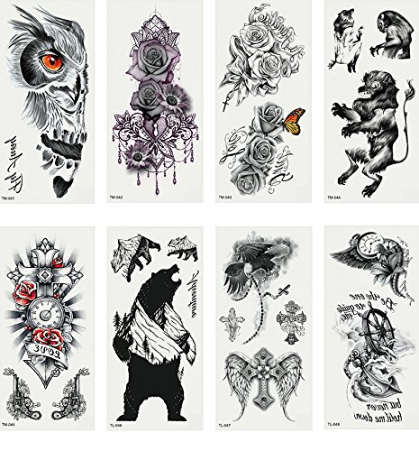 Oottati 2018 New Temporary Tattoo 3D Stickers Set 8 Sheets TL06