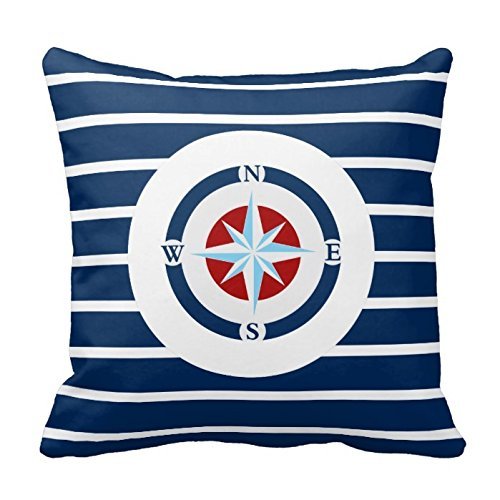 Decorbox Cotton Stripe Pattern Pillowcase Blue White Stripes Nautical Compass Throw Pillow Covers 18 x 18