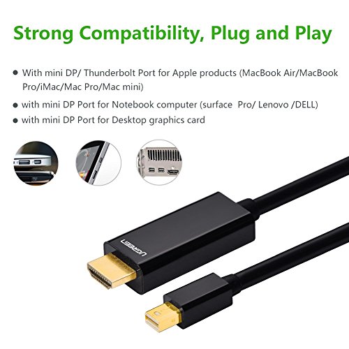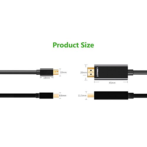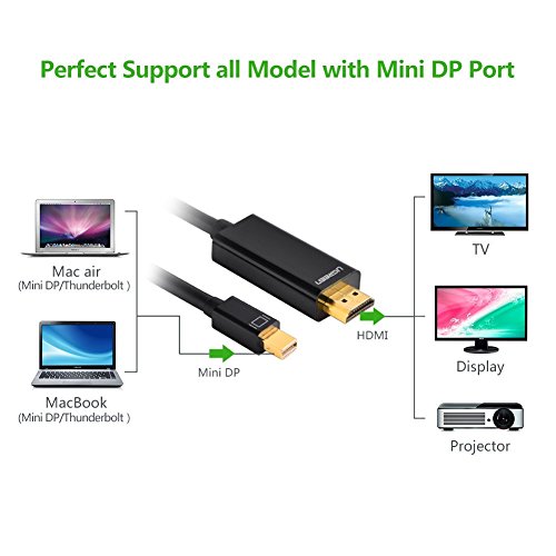 RESOLUTION : Ugreen mini DP to HDMI cable supports video resolutions up to 1920 x 1200 and 1080p (Full HD) and flawless audio pass-thru for uncompressed digital 7.1, 5.1 or 2 channels.