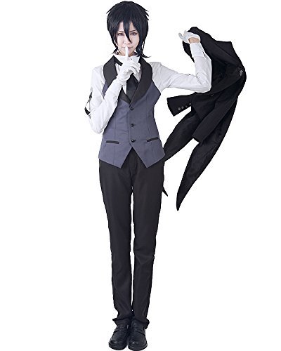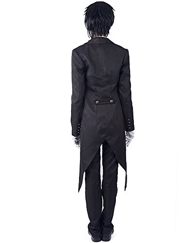 -. Brand : Miccostumes -. Color : Black -. Department : mens -. Feature : 65% cotton/35% polyester and available in men s,m,l,xl and women s, m, and l / The butler's outfit consists of a black six-button double-breasted tuxedo,a white shirt with Phantomhive crest in the front chest,a grey vest,pants,a tie,gloves and the metal violin icon. / A violin icon is pinned on the left collar of the tailcoat. / The tall, handsome adult costume is slim fit. / Cosplay as Sebastian Michaelis dressing in the costume together with black hair and a pocket watch. -. PackageQuantity : 1 -. ProductGroup : Apparel -. ProductTypeName : ADULT_COSTUME -. Title : Miccostumes Men's Black Butler Sebastian Michaelis Cosplay Costume