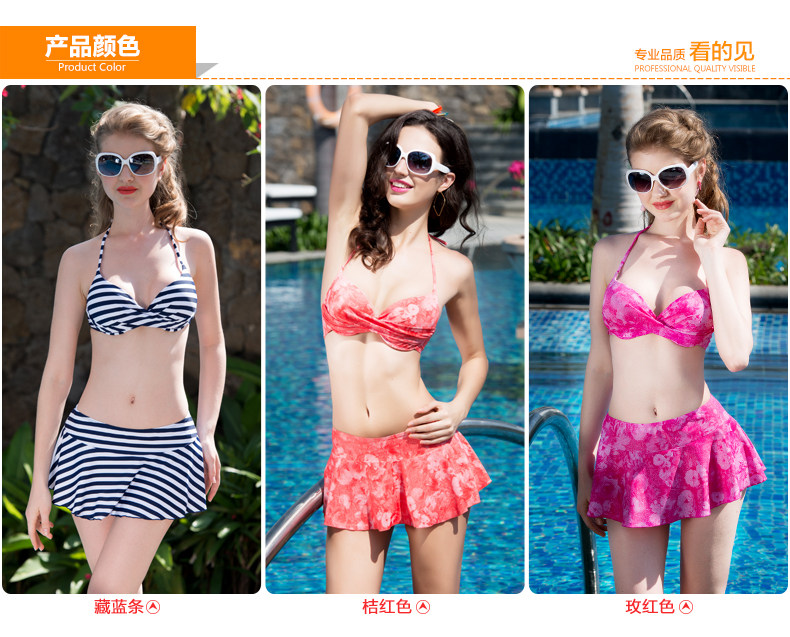 1419夏亿莎泳装女装三件套小胸聚拢钢托显瘦温泉…