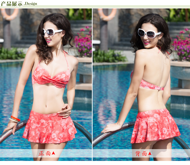 汐诗威新款浪漫情侣游泳衣钢托分体裙裤四件套女比基…