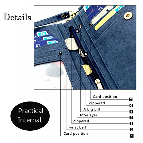-. Feature : ENOUGH SPACE: 12 credit card slots(including 1 id window), 4 open compartments and 3 zippered pockets. Enough space for daily use, very convenient and practical. / REMOVABLE STRAP: With a removable strap, you can easy carry it around, free your hand. / PERFECT SIZE: 7.1 x 3.9 x 1.4 inches. It fits up to IPHONE6. It's perfect size to hold it on hand or put it in your handbag. / EASY ORGANIZATION: plenty space for storing your essentials such as bill,passport,checkbook,money,credit cards, change, coin and cellphone, like iPhone6, Samsung Galaxy S6, etc. / HIGH QUALITY: The purse is made of high quality PU leather and gold color coated metal zipper. Premium quality zipper for super durable and easy to use. Great touch feeling, soft and comfortable, convenient to carry around, perfect as a travel purse.