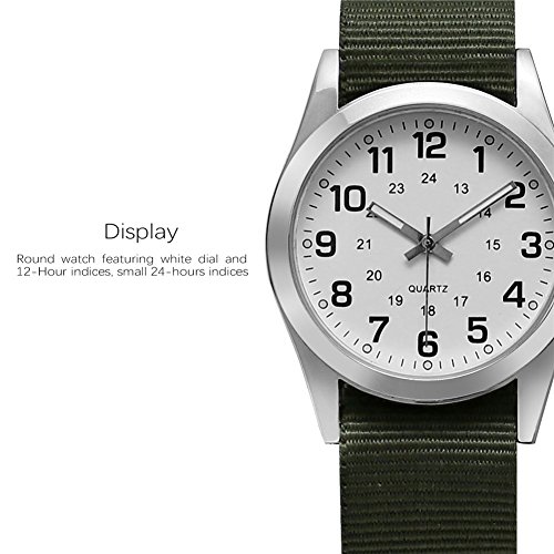 -. Binding : Wireless Phone Accessory -. Brand : bidapengkeji -. Color : Army Green -. Department : unisex-adult -. EAN : 0608220720731 -. Feature : Round watch featuring white dial and 12-Hour indices, small 24-hours indices. / 37mm stainless steel case with mineral dial window. / Adjustable nylon strap with bucket closure. Diameter of the strap: 20mm / Japanese quartz movement with analog display. Powered by button battery, it can last a long time. / It is not water resistant. Not suitable for swimming. -. Label : bidapengkeji -. Manufacturer : bidapengkeji -. PackageQuantity : 1 -. ProductGroup : Watch -. ProductTypeName : WATCH -. Publisher : bidapengkeji -. Size : Midium -. Studio : bidapengkeji -. Title : Unisex Wrist Watch Quartz Analog Stainless Steel Case with Canvas Band Strap Watches -. UPC : 608220720731