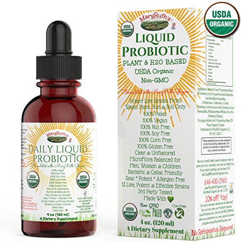 -. Title : ORGANIC LIQUID PROBIOTICS by MARYRUTH (Plant Based) USDA Certified Organic, Vegan, RAW, Paleo, non-GMO, Highly Potent Live Strain Flora assists digestion & maximum absorption of vitamins/minerals 4oz