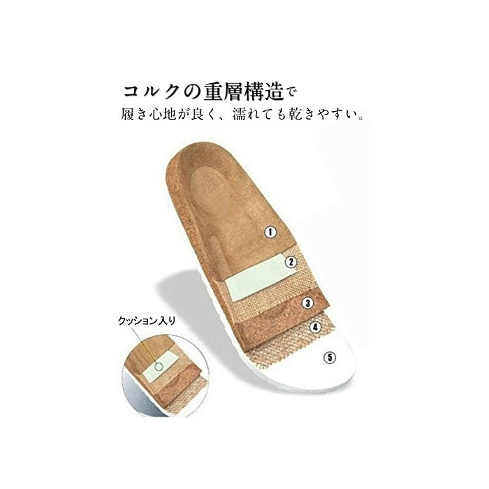 ?【발바닥 피트】코르크의 특수중 층구조에 쿠션성이 높고, 완만한 함몰이 발로 피트 해 신었을 때의 감촉도 쾌적합니다.