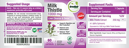 - Feature : WHAT IS MILK THISTLE?: Milk thistle is a flower herb related to ragweed and the daisy. Milk thistle uses include liver cleansing, detox, anti-oxidation, and anti-inflammation. / LIVER DETOX CAN MAKE WEIGHT LOSS EASIER: This milk thistle liver detox aid is derived from milk thistle seeds, a powerful liver support supplement. Milk thistle benefits your liver, and the healthier your liver is the easier it will be to keep your blood sugar stable and avoid unhealthy cravings. / REAP THE BENEFITS OF MILK THISTLE EXTRACT: Milk thistle powder is one of the oldest and most efficacious liver detoxifiers available. Boost your energy, lower your blood sugar, and accelerate weight loss with milk thistle plant extract. / ONE OF THE HIGHEST MILK THISTLE DOSAGES ON AMAZON: We've created one of the most potent liver support and detox supplements on Amazon by including 250mg of milk thistle extract in every capsule. This is the equivalent of 1000mg of milk thistle powder / TRY ABSOLUTELY RISK-FREE: We pride ourselves on offering the best milk thistle supplements on the market. This standardized milk thistle supplement is all natural, gluten-free, and sourced in the USA. Return at any time within sixty days of your purchase for a full refund-no questions asked