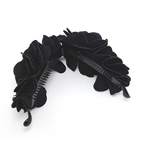 Meilliwish Flowers Rose Hair Clip Ponytail Holder(H41)(Black)