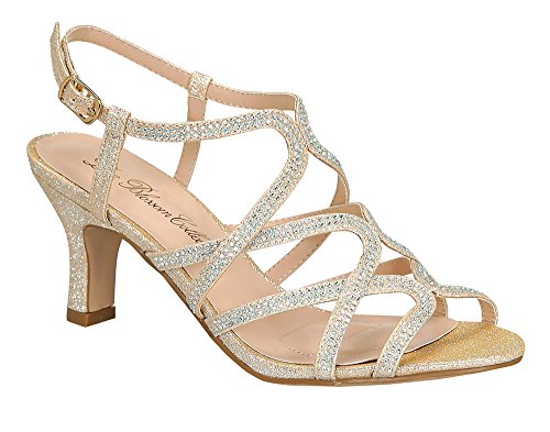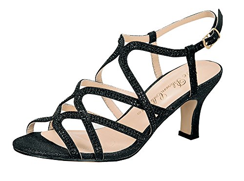 Binding : Apparel Product Description Crystal - 26 is stunning strappy low heel with a matte glitter overlay that features a cross-cross deisgn that is completed with A/B crystals on the straps. These gorgeous heels are perfect of any special ocassion, so get ready to dance the night away in them. This comfortable proven construction boasts a custom German outer sole, lined cushion insole, a heel height or 3", and a platform of 0.25". 0