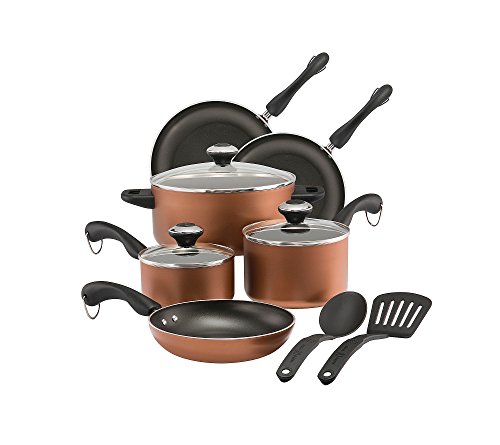 Studio : Paula Deen Publisher : Paula Deen Binding : Kitchen Product Description Dish it up and dish it out with the Paula Deen Dishwasher Safe Nonstick 11-Piece Cookware Set, combining durability and performance with classic style. This 11-piece cookware set furnishes any kitchen with the necessities required to create everything from Paula's Chicken Fried Steak to classic bread pudding. The cookware is constructed from aluminum for fast and even heating, and the interiors are coated with long-lasting nonstick so foods can be transferred easily to serving plates without sticking to pots and pans. With the shatter-resistant glass lids, the cooking process can be monitored without heat and moisture loss, and the lid knobs are accented with copper for a stylish look. Depend on Paula Deen to make cookware that cooks as good as she does! The cookware handles are double riveted for extra strength. Hanging loops provide convenient storage options in any size kitchen, and the cookware is oven safe to 350 DegreeF. Best of all, this line of cookware is dishwasher safe so cleaning up is always easy as pie. This set even comes with the sturdy nylon Prestige(r) nonstick-suitable slotted turner and solid spoon so cooks can start making Paula's recipes their own right away. Grab hold of a Paula Deen Dishwasher Safe Nonstick 11-Piece Cookware Set to bring home convenience and style in a cooking set that's got a piece for every dish. 0