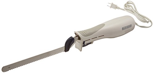 New Black & Decker Stainless Steel EK700 9-Inch Electric Carving Knife White What would the holidays be like without a sharp knife slicing through hot turkey, ham or brisket? To cut perfectly sliced meats is effortless with the Black & Decker Slice Right Electric Knife series. It has a safety lock that prevents accidental starts, and a comfortable handle with non-slip grip.The serrated part of the knife measures 7" but there is a 2" tang before the plastic safety guards allowing up to 9" carving.