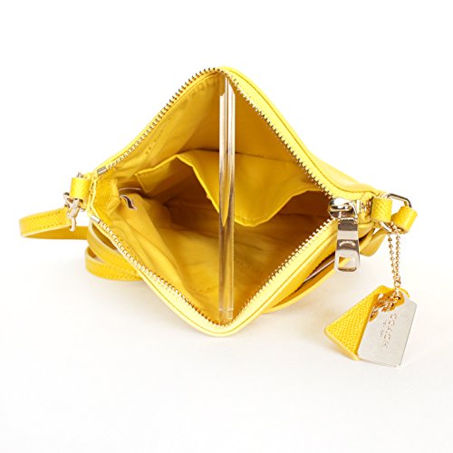 -. Binding : Accessory -. Brand : Coach -. Color : Yellow -. Department : womens -. EAN : 0888067729207 -. Feature : Made of Leather / Approx. 7 3/4" x 8 1/4" x 1". / Zip Closure / Interior multifunction pockets. / Fabric Lining. Gold tone Hardware. COACH box and dust bag are not included. -. Model : 52348-LIYLW -. MPN : 52348-LIYLW -. PackageQuantity : 1 -. PartNumber : 52348-LIYLW -. ProductGroup : Shoes -. ProductTypeName : HANDBAG -. Size : one size -. Title : Coach 52348 Embossed Textured Leather North/south Swingpack, Yellow -. UPC : 888067729207 Updated in embossed leather with a delicate yet durable texture, the slender North/South Swingpack keeps valuables securely stowed for weekends and travel. It comes with an adjustable, edge-painted strap for a comfortable, hands-free carry.