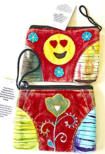 Nepalese Handcrafted Bags For Beauty Items, Make-Up Bags Hand-Stitched by Nepalese Native Women Imported from Himalayas (Set of 2) Made of 100%...