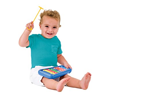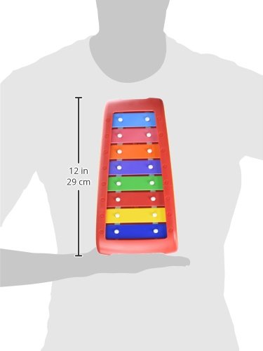 A real xylophone, table styled, with colorful extruded aluminum keys which are accurately tuned before they are assembled, to play along with other instruments and recordings. Keys are marked with the associated notes, which chime clearly and loudly. Features scuff resistant legs and snap-in holder for the striker. Packaged for easy gift wrapping.