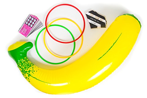 Bachelorette Party Games (3pk) Party Favors - Inflatable Banana Ring Toss, Drinking Game Party Cards, Scratch Off Dare Cards - Adult Games / Girls Night Out / Hen Party Game / Bridal Shower Games