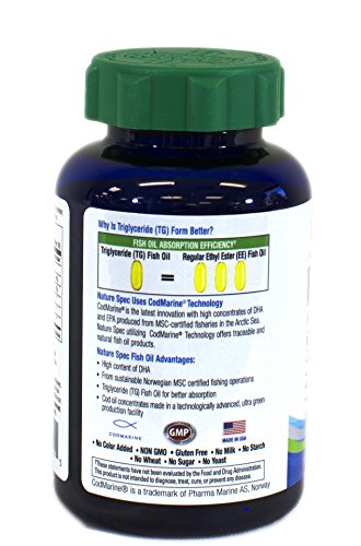 Nature Spec fish oil omega-3 is harvested from the pure, deep arctic sea using sustainable fishing methods certified by cod marine. By using triglycerides (tg) form, our unique formula absorbs three times faster than regular ethyl esters (ee) form. Nature Spec fish oil omega-3 is greener, fresher, and healthier. With a great lemon zest, it tastes better with no fishy aftertaste Nature Spec fish oil is sourced fresh and direct from Norwegian msc – certified fisheries in the artic sea. Every bottle is produced in our gmp – certified facility. Pure, natural, and traceable fish oil that you can trust Nature Spec fish oil advantages: . Fish sourced from pure deep arctic . Traceable fish resource . Fish oil extract from patented cod marine . Tg form fish oil has three times the absorption rate of ee form . High content of dha . Lemon flavor, no fishy aftertaste . Variety of eating methods . Brain, heart & immune system support . Pure cod marine omega-3 . Chewable soft gel . Non-gmo.Feature