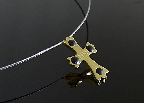 게르마늄 넥크리스 팔찌 외에 다이아몬드1포인트 탑재 게르마늄4석 크로스 티타늄 넥크리스 골드