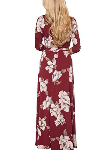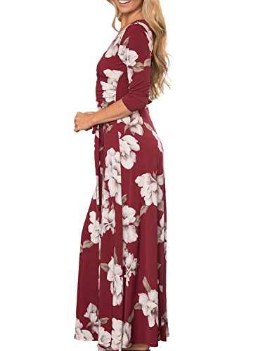 MIHOLL Women's Paris Bohemian 3/4 Sleeve Faux Wrap Maxi Dress Long (XX-Large, A- Red)