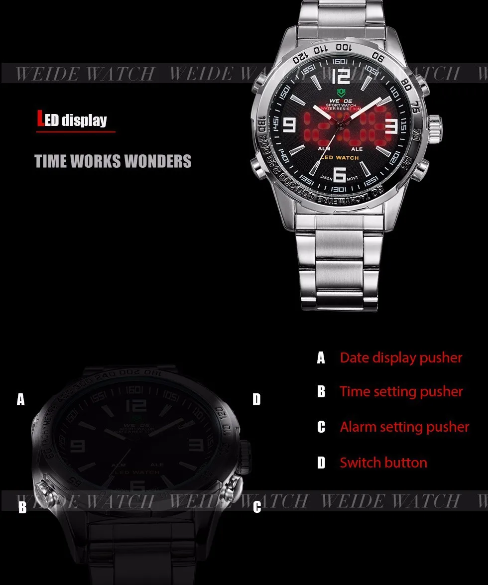 Feature:Auto Date,Water Resistant,Back Light,LED display,Alarm