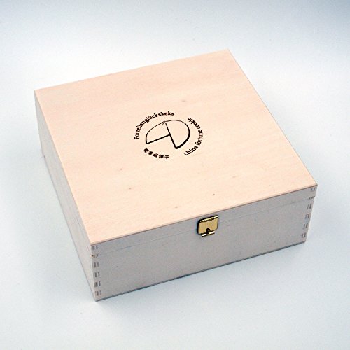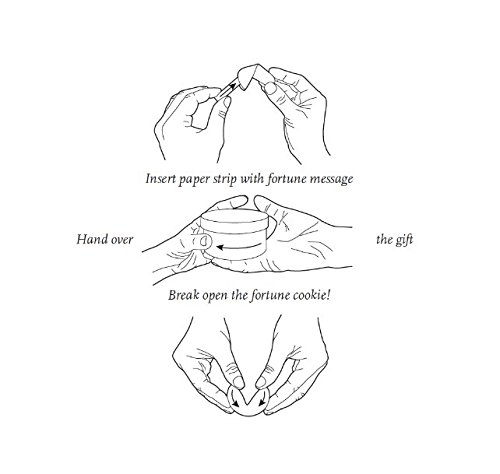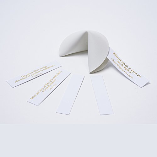 Accompanying paper strips with pre-printed fortune messages in gold writing, and for writing yourself
