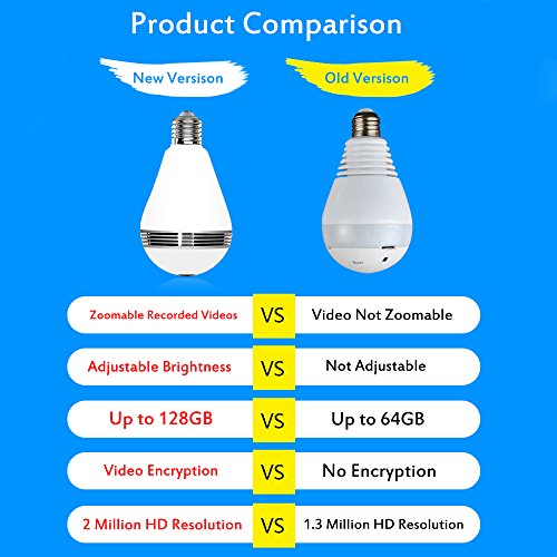-. Title : Marceloant Security Camera Bulb System (2017 New Design), Wireless Home Security IP Dome Camera Light Bulb System, 360 Degree Fisheye Lens Wi-Fi Video Digital Security Camera