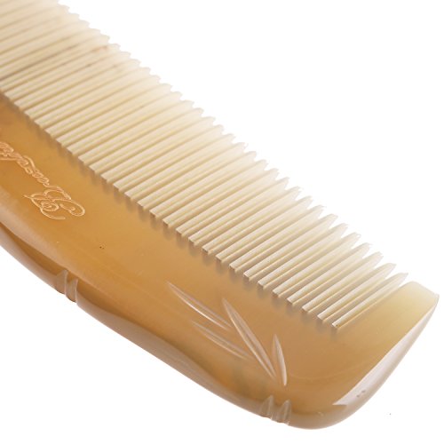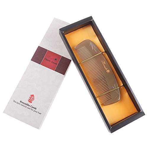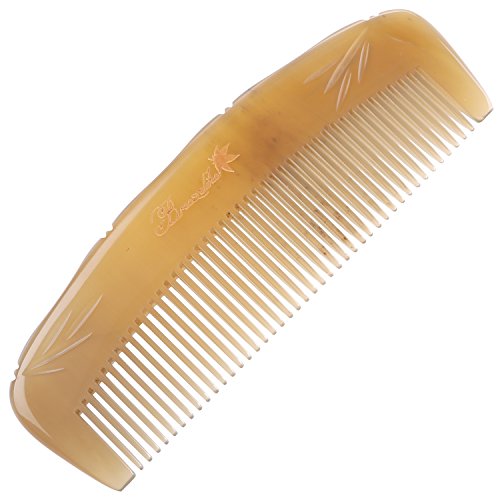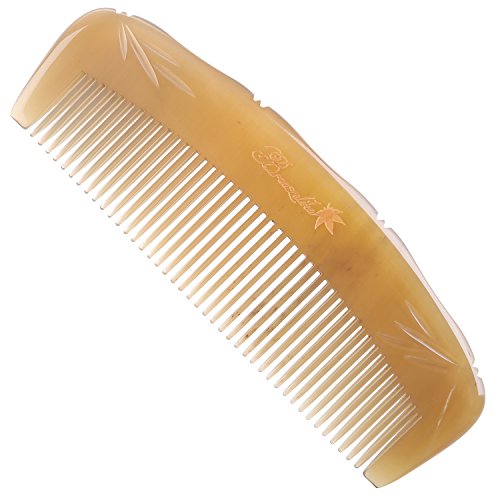 Breezelike No Static Handleless Tibetan Yak Horn Comb with Bamboo Carving