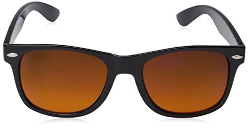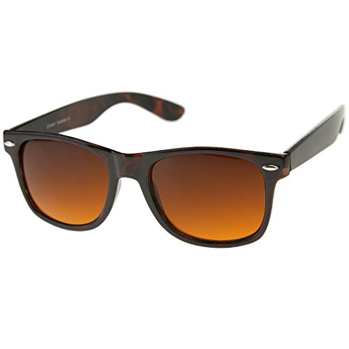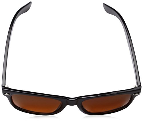 Wayfarer style sunglasses featuring amber-tinted polycarbonate driving lenses and reinforced metal hinges