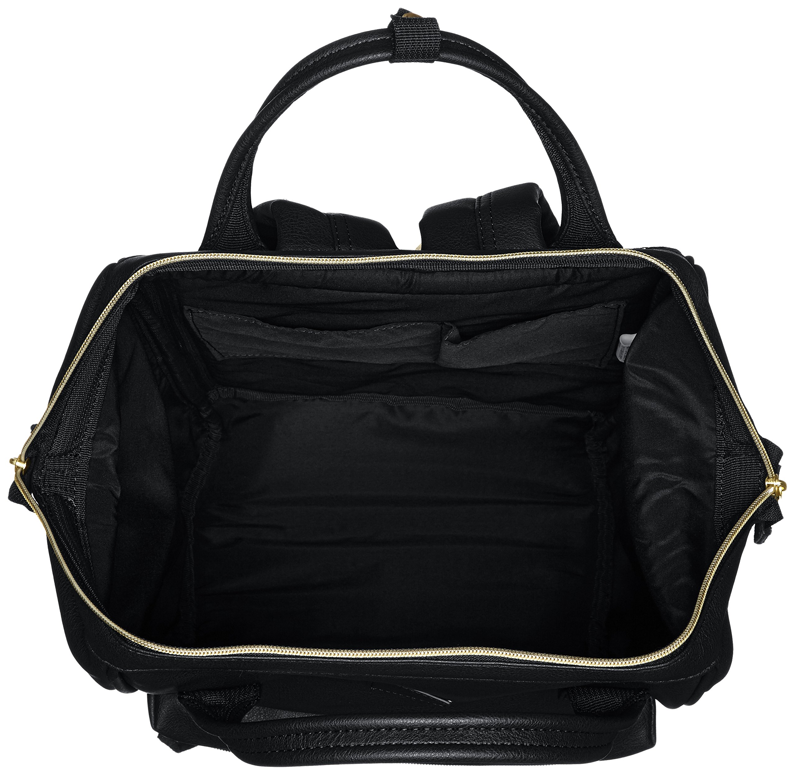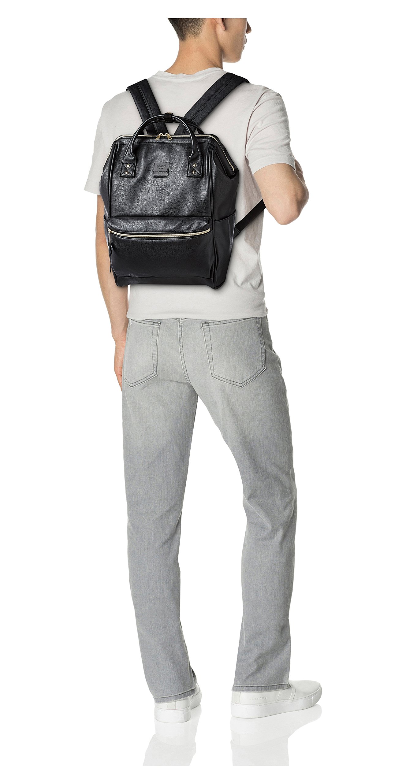 It is a slightly larger backpack using a firm synthetic leather.