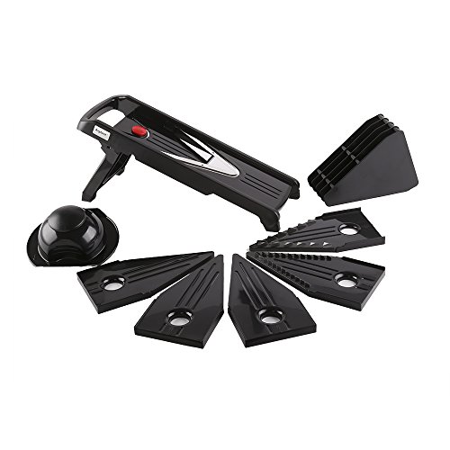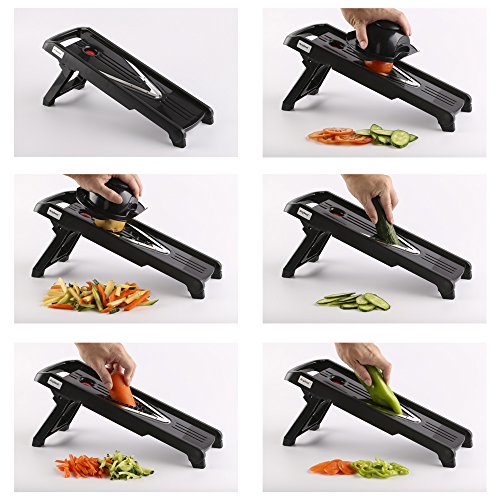 - Feature : Compact slicer for slicing, grating, shredding, and juicing for 5 different cutting options / Razor sharp, has 1.5mm,2.5mm,3.5mm three blades and 7*7mm for coarse, 3.5*3.5mm for fine juicing / Environmentally friendly energy principle,no power,safe and convenient installation cleaning. / Simple, lightweight and durable;Non-skid base and ridges keep it stable on cutting surface / Vegetables and fruits can be processed maintain authentic taste; Maintain the maximum nutrition